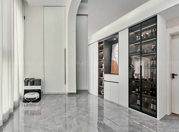 實木柜體搭配PET膚感柜門,一門到頂,質感超不錯,多組設計更是實現收納需求,