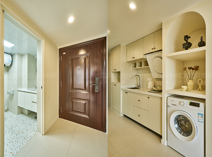 18mm厚杉木芯板,鞋柜櫥柜和內嵌式洗衣機組合設計,充分的利用空間,收納更方便。