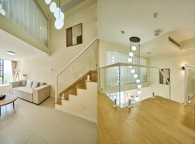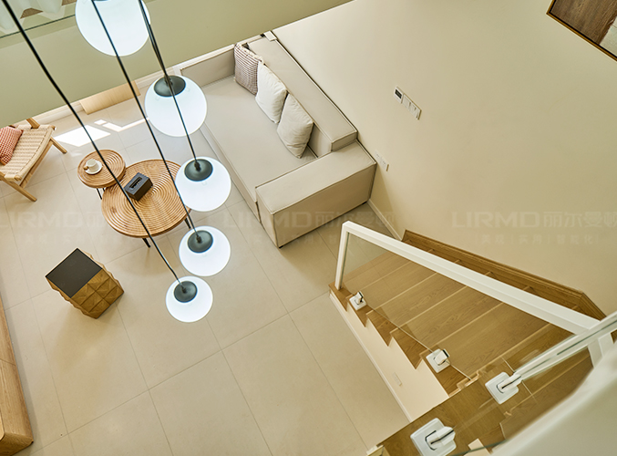 全木地板樓梯設計,安裝簡約風球型吊燈,體現復古藝術感。