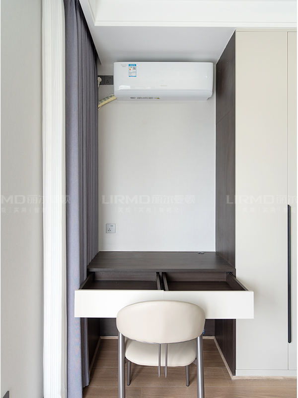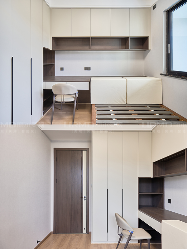 收納柜書桌一體設計,充分利用房間的各個空間