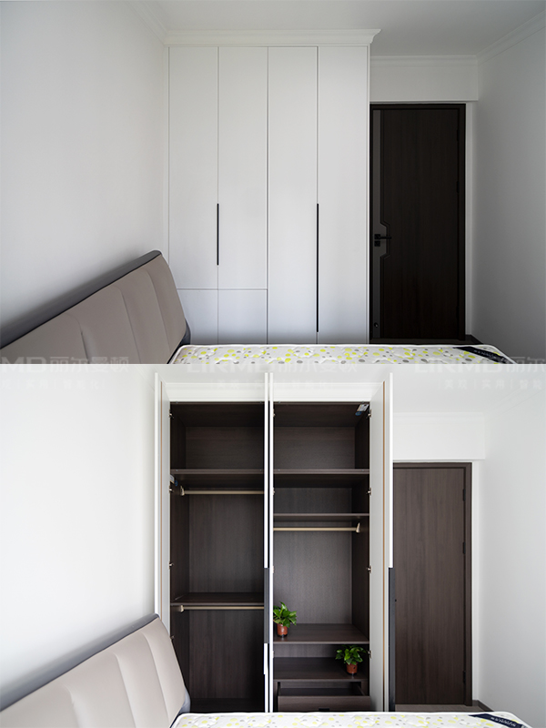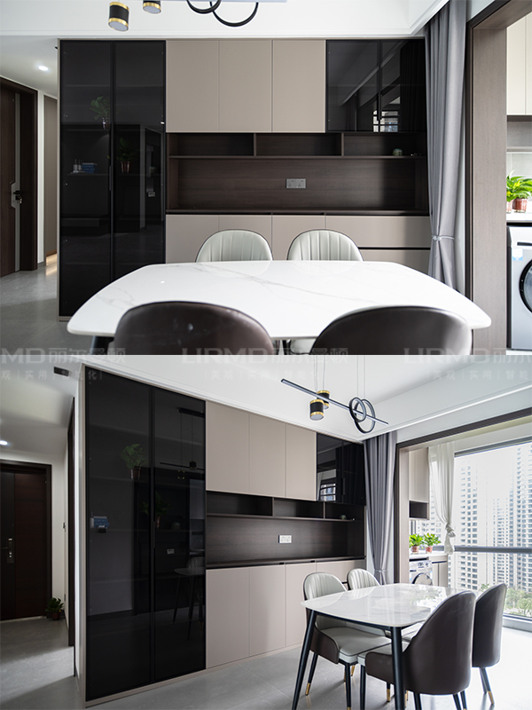 柜體采用足18厚杉木芯板,柜門采用LSB板PET膚感柜門,一門到頂,五金使用原裝進口的百隆五金