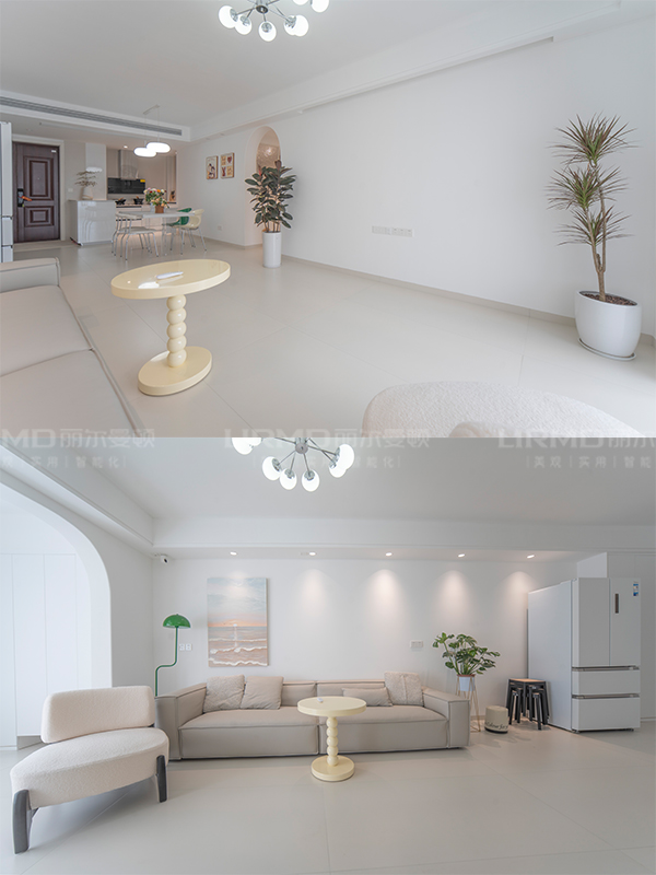 ?無論是墻面、頂面、還是柜子,該案例整體采用奶白色色系搭配,非常柔和治愈。?