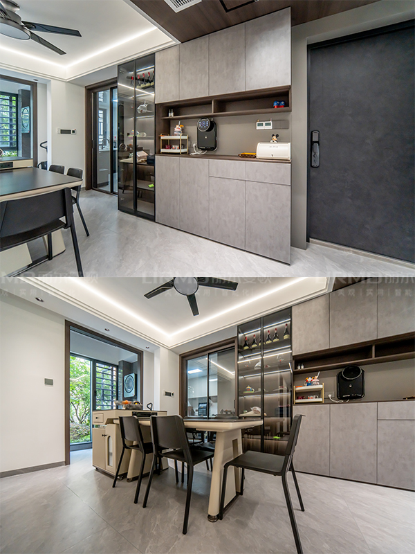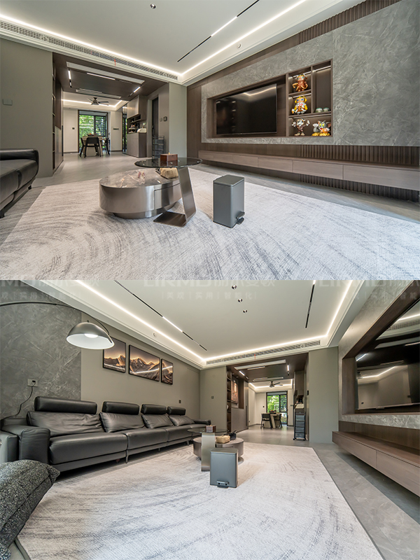 客廳采用了隱形門設計,延長電視背景+沙發背景視覺,是整體空間看起來更大