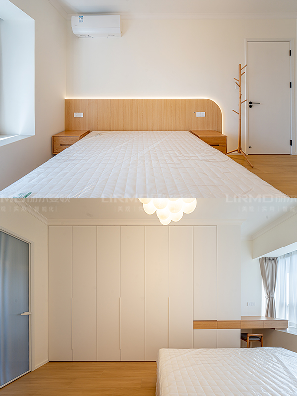 雙眼皮吊頂搭配暖色系氛圍燈,打造溫馨簡約的舒適環境