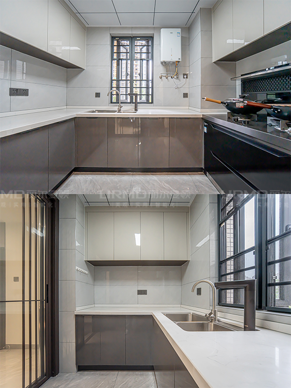 全屋定制:做了13個柜子(入戶到頂大鞋柜、內嵌冰箱柜、電視里抽屜柜、洗衣機收納柜、到頂玻璃收納柜、U型櫥柜、