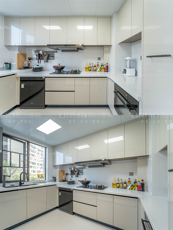 全屋高端定制:柜體板材18厚杉木實芯板,柜門有pet膚感、高光、超晶、五金使用原裝進口奧地利百隆五金