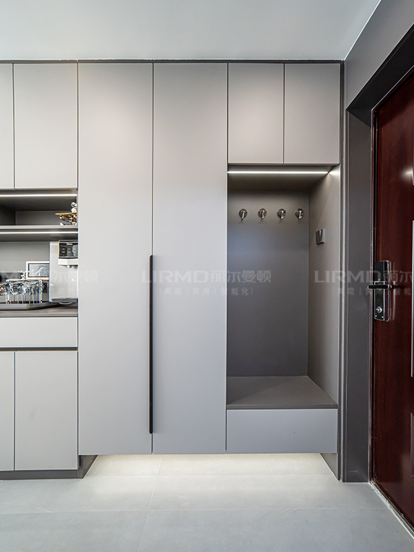 全屋高端定制:柜體板材18厚杉木實芯板,柜門有pet膚感、高光、超晶、五金使用原裝進口奧地利百隆五金