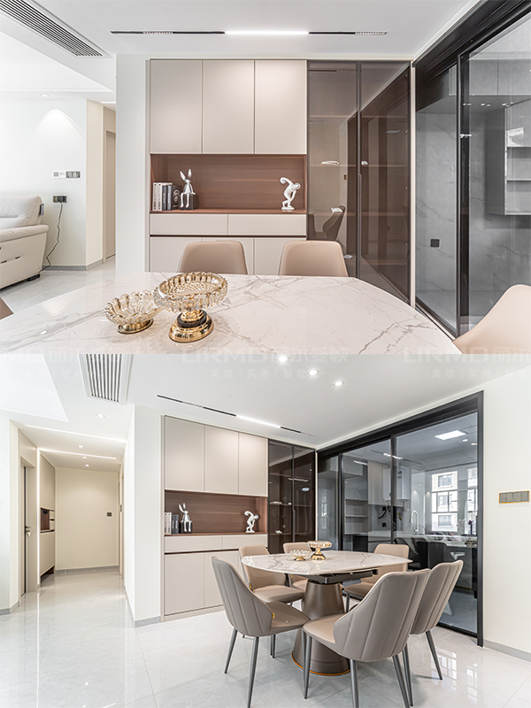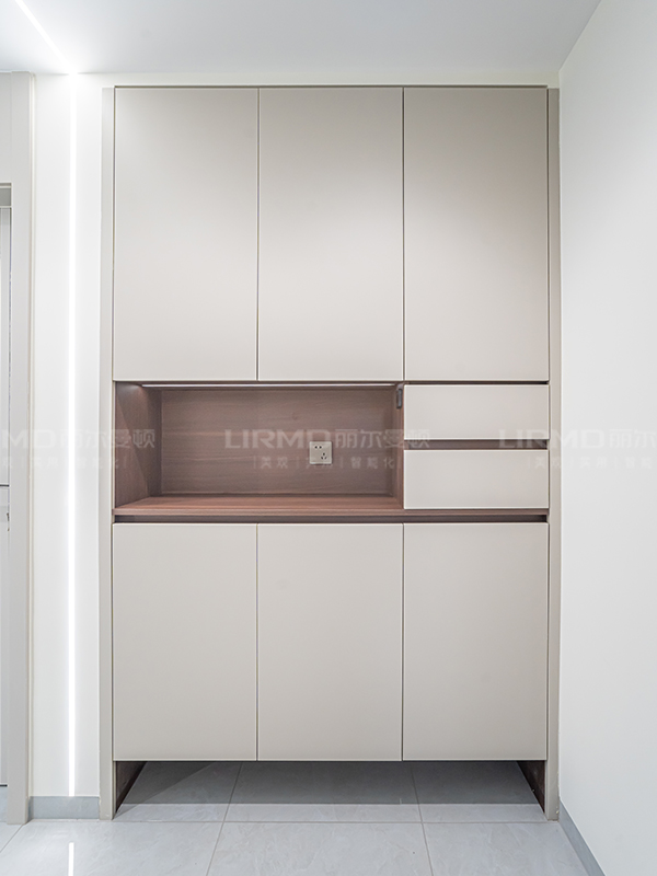 選擇門墻柜一體設計,使得空間得到充分的利用,從而提高了空間利用率和使整體風格保持一致。
