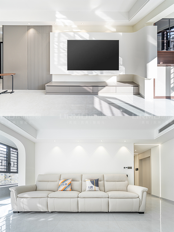 弧形線條+懸空設計,用一面電視背景墻驚艷客廳,這樣的設計真的又新穎又時尚。