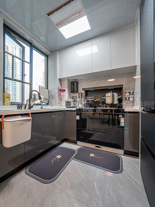 全屋1500×750柔光瓷磚,整體通透大氣,清潔方便,一字柜搭配玻璃柜,更得輕盈通透,滿滿的高級感