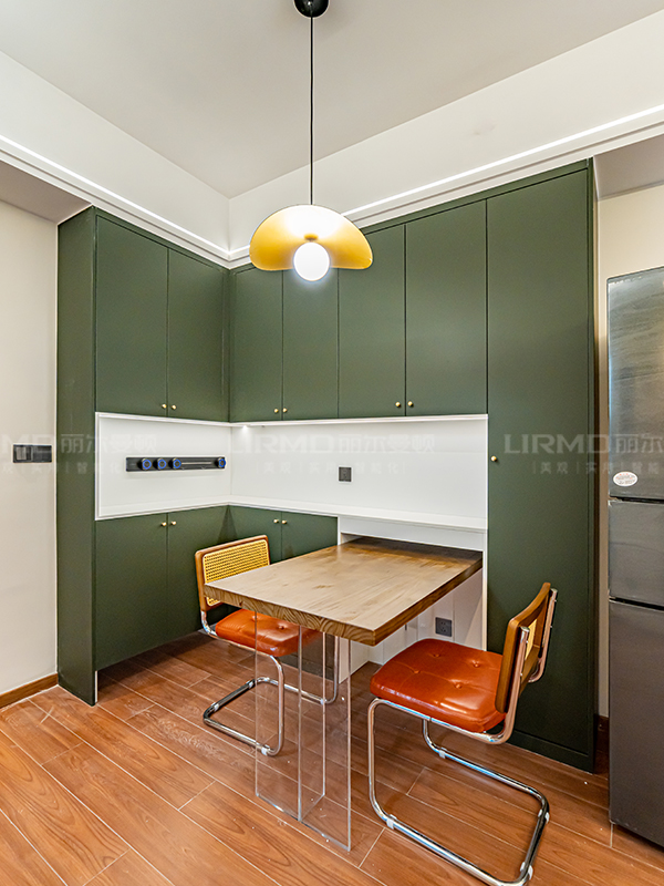 充分利用空間,U型收納柜+小吧臺餐桌,顏值與收納并存