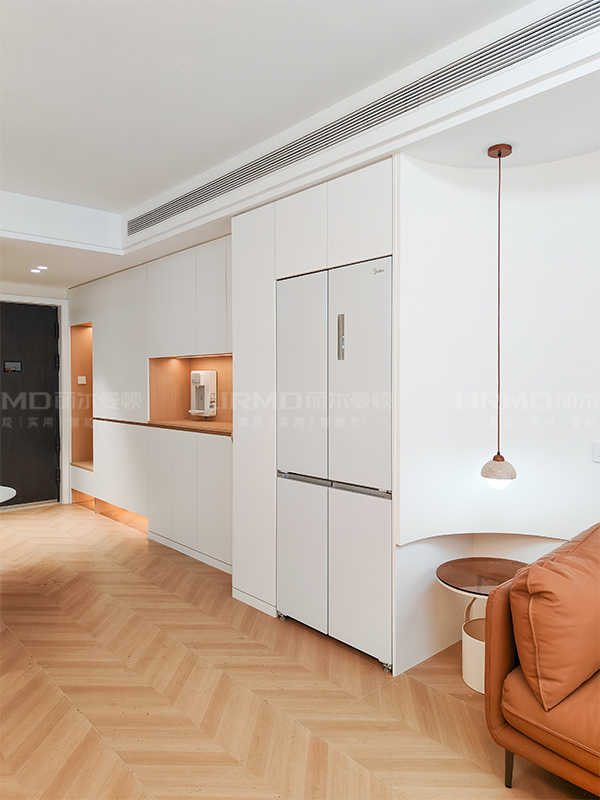 多功能入戶玄關(guān)柜,零嵌入冰箱,中間鏤空設(shè)計,方便放鑰匙等物品,實用性拉滿