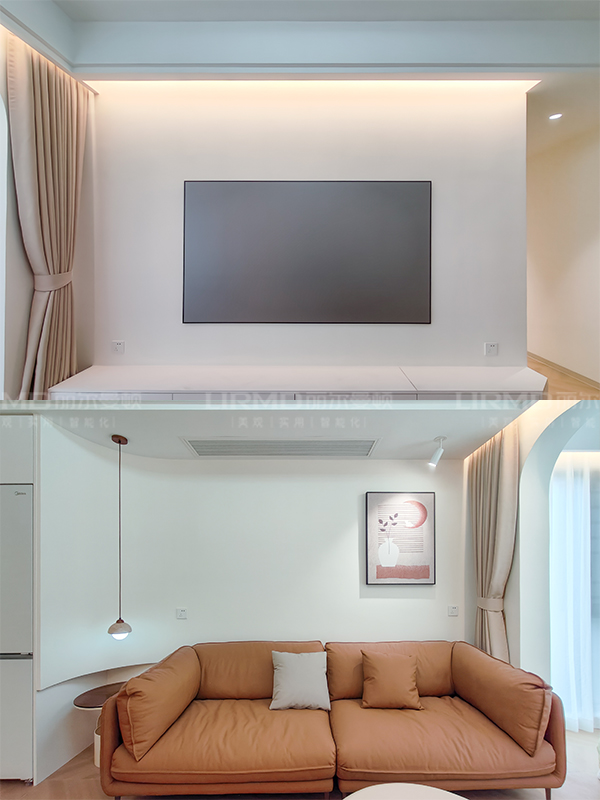 一字型懸浮電視柜,右邊切割設(shè)計不容易碰撞,大面積留白,簡單耐看