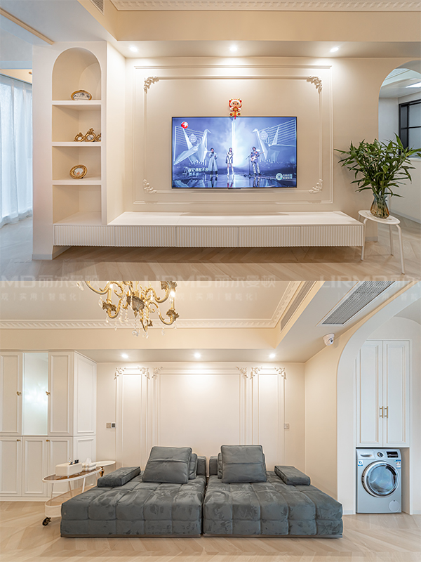拱形門洞作為陽臺和客廳的分界點,造型獨特,營造藝術氛圍的歸家儀式感