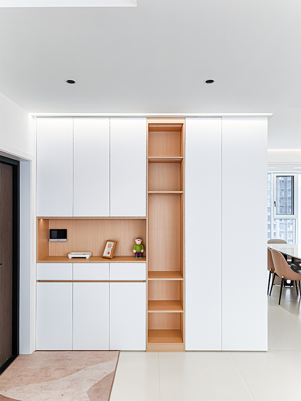 極簡感貫穿整個空間,原木色淡化了極簡風帶來的疏離感,讓家有了溫度