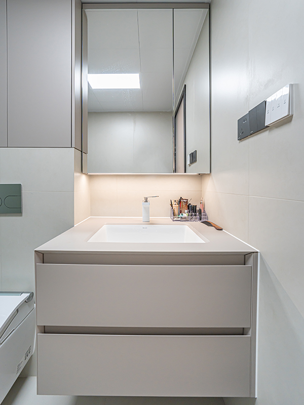 通鋪了1500×750的淺色瓷磚,使得空間得到了延伸,家里看起來顯大又通透