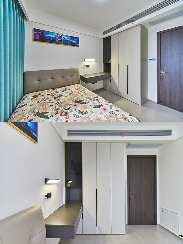 長(zhǎng)沙靠譜裝修公司,長(zhǎng)沙靠譜全屋定制,臥室衣柜加梳妝臺(tái),現(xiàn)代極簡(jiǎn)風(fēng),