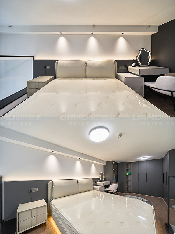 增加墻板輔助線形燈,增加氛圍感,朝大U型衣帽間滿足日常儲物需求