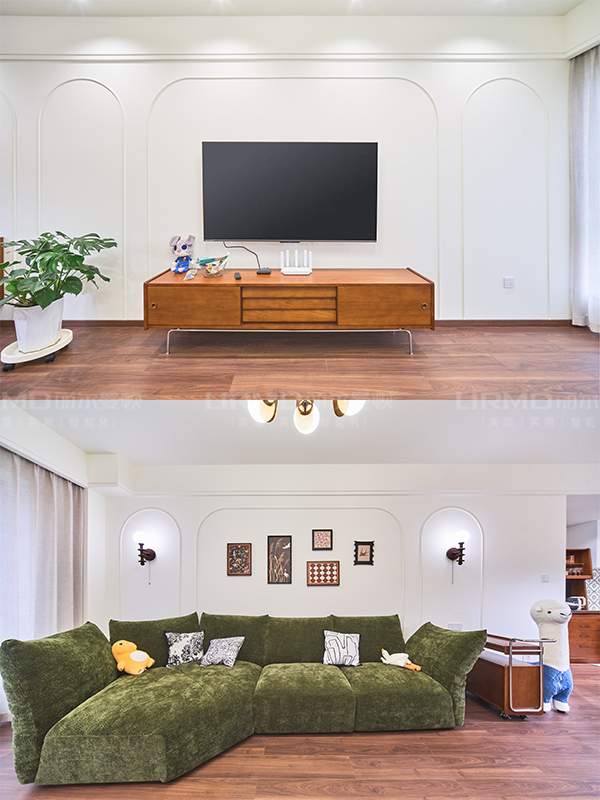通鋪大自然月灑胡桃木,木質(zhì)色的搭配讓屋內(nèi)充滿氛圍感