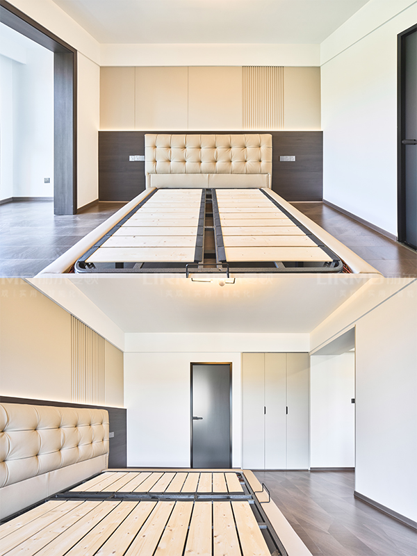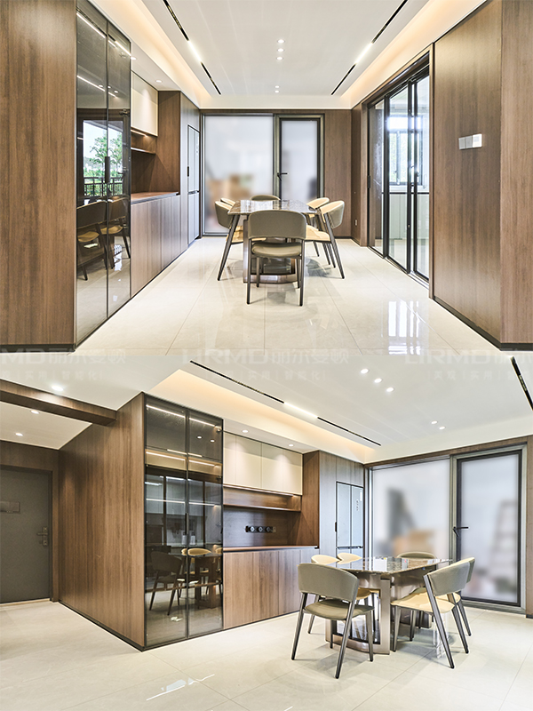 走道用木飾面全部包裹,自然的紋理和溫暖的色調,更能融入家居風格中。