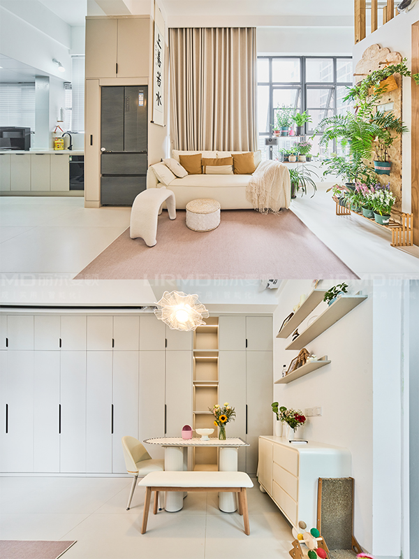 起居室保留原始層高,留出挑空氛圍,讓空間整體不顯壓抑