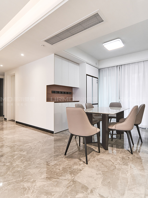 客廳餐廳陽(yáng)臺(tái)整體打通,滿足業(yè)主“大平層”的要求