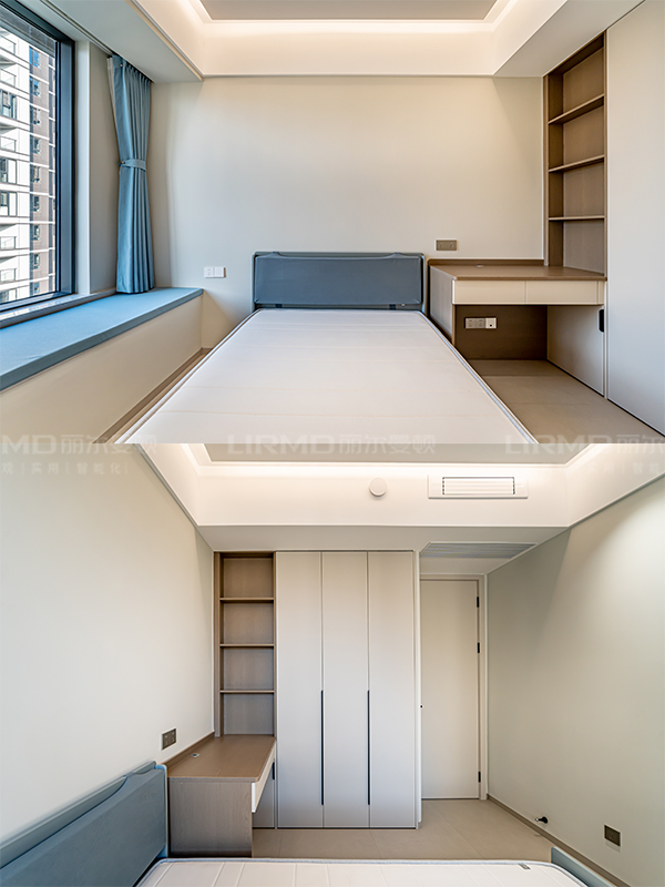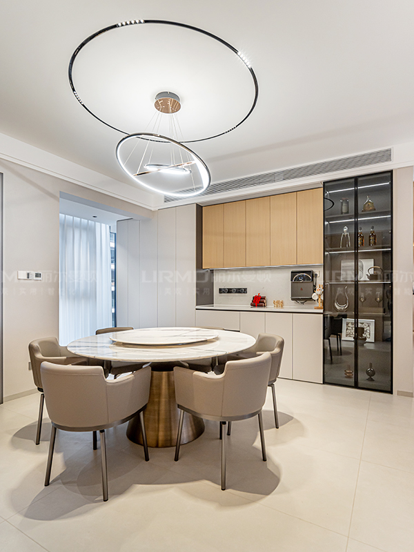 全房無主燈設計,將現代輕奢精髓發揮極致。點光源+線性燈帶搭配,照明均勻而充足,浪漫溫馨。