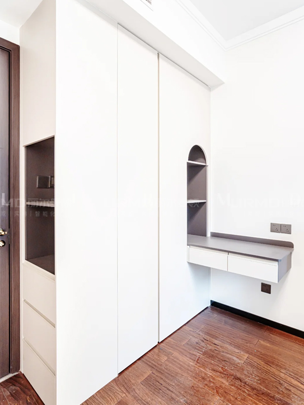 全房門墻柜一體化,圓弧設計,通體拉手等設計無不體現出麗爾曼頓10.0高定奢配工藝的實力。