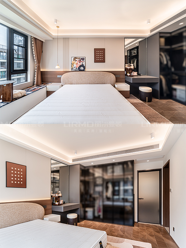 長沙靠譜裝修公司,長沙靠譜全屋定制,臥室衣柜加梳妝臺,意式極簡風,